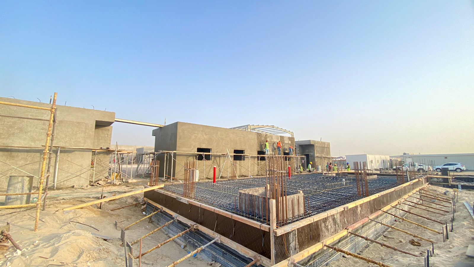 صورة لمقر الجمعية الجديد ( مركز يوسف بن احمد كانو ) اثناء اعمال التشيد ،، حيث يظهر في الصورة بداية تشيد المسبح اضافة مقر ادارة الجمعية،