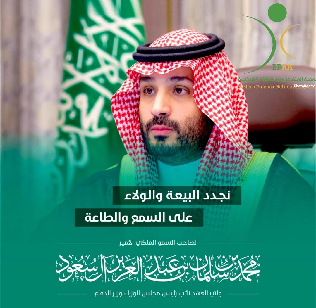 يتقدم أعضاء مجلس إدارة جمعية المتقاعدين بالمنطقة الشرقية وكافة منسوبيها إلى مقام صاحب السمو الملكي الأمير محمد بن سلمان بن عبدالعزيز ولي العهد بمناسبة ذكرى البيعة السادسة لسموه الكريم سائلين المولى عز وجل أن يسدد خطاه